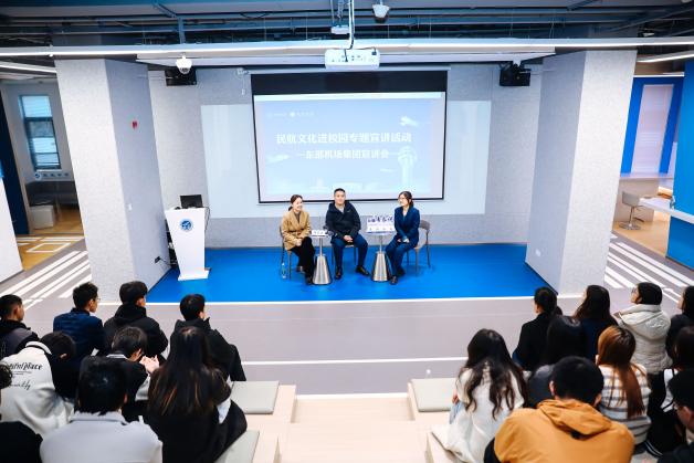 在“声动民航”环节,华东空管局、江苏空管分局、东部机场集团、常州奔牛机场等单位人力资源专家及业务部门骨干分专业为学生开展形式多元、内容丰富的宣讲交流。在“行业专家说”中,结合机场建设、运营与管理的实际经验,为同学们介绍机场行业的发展概况与前沿展望;在“行业学长说”中,优秀校友通过讲述自身的奋斗经历,为学弟学妹的专业学习和未来规划传经送宝。