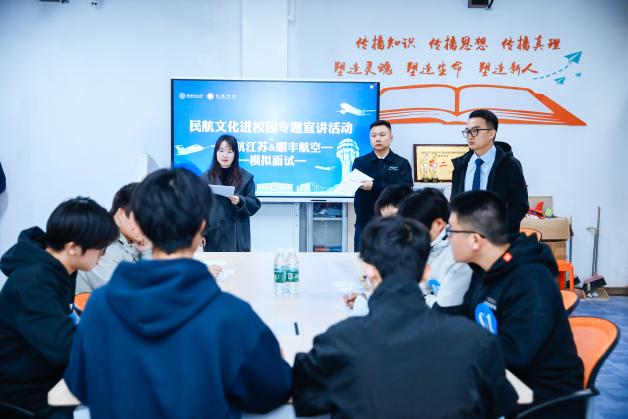 在“行动民航”环节,针对学生最关切的求职就业及生涯规划问题,企业人资代表与学院学工办、专业教师代表开展学生职业生涯规划交流研讨会,就学生专业能力培养、综合素质提升、职业发展路径等议题交换意见,共谋学生高质量充分就业的培养目标。东航江苏、南方航空、春秋航空、吉祥航空、亚联公务机、顺丰航空、国泰航空等分别开展模拟招聘、HR微沙龙活动,为学生介绍三级片及岗位需求,分享求职经验,帮助同学们在实战中训练求职技能。
