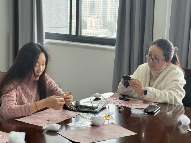 手工制作环节,女教职工们在专业老师的指导下,全身心投入到创意手工制作活动中。在创作的同时,她们互相交流技巧,分享创作灵感,充满欢声笑语。