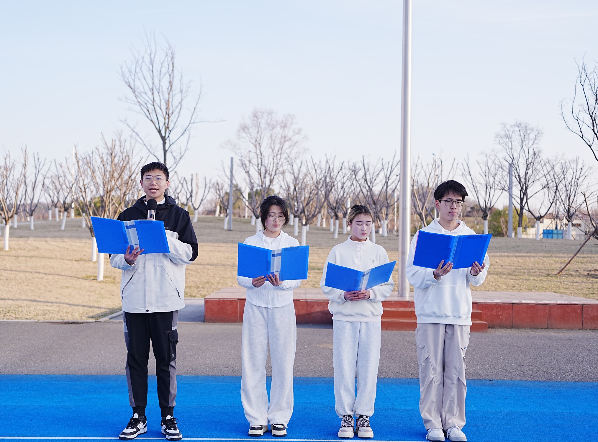 曾语彤、苏思雨、王子朋、武佳妮四位同学以原创诗朗诵深情讴歌中国民航事业发展历程。从筚路蓝缕的创业岁月到智慧引领的腾飞时代,饱含激情的朗诵带领师生穿越时空,感受一代代民航人服务国家战略的使命传承。作品聚焦新时代民航科技突破与产业升级,激励青年学子在行业发展坐标系中锚定人生方位,以过硬本领担当时代重任。