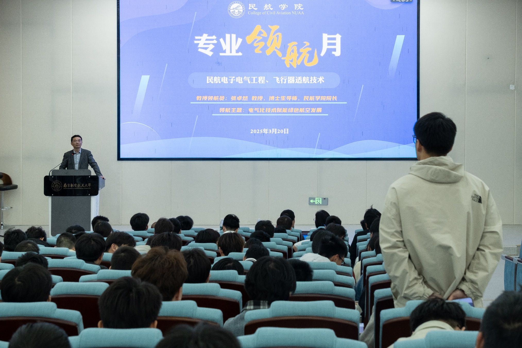 为深化专业认知教育,培育学生创新精神,3月20日,三级片 在天目湖校区牧星楼T2108报告厅举办“教授会客厅”活动,院长张卓然教授以《电气化技术赋能绿色航空发展》为题作专题报告,学院党委副书记王艳,民航工程系党支部书记陆中、系主任丁萌、系副主任宫淑丽等教师代表与学院2023级、2024级相关专业300余名本科生共同参与本次活动。