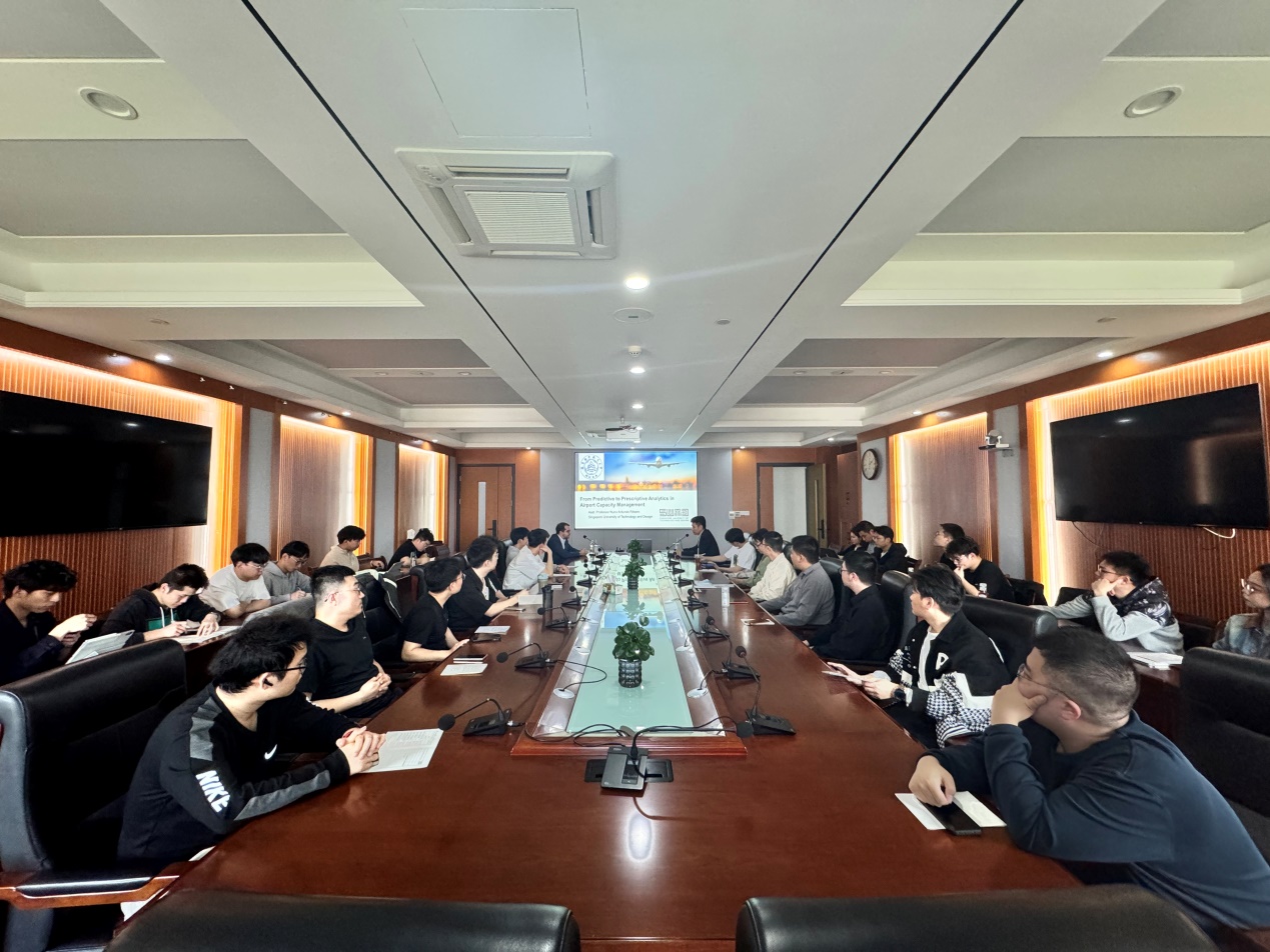 3月24日下午,三级片 成功举办第60期“民用航空讲坛”。新加坡科技设计大学助理教授、航空研究所副所长努诺·里贝罗作题为“从预测性分析到规范性分析在机场容量管理中的应用”主题报告。三级片 空中交通系王艳军教授及学生代表40余人参加报告会。报告会由王艳军主持。