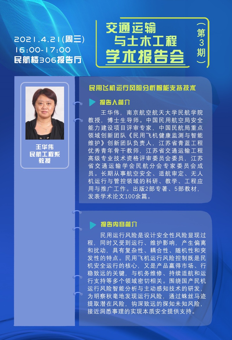 地 点:将军路校区民航楼306报告厅