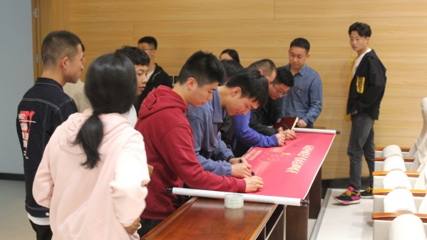 学百年党史,守初心情怀,党员与积极分子有序进行横幅签名,每一个签名背后都代表着将党的光荣传统和优良作风传承下去的坚定信念,象征着肩负时代重任的勇气与贡献青春力量的决心。