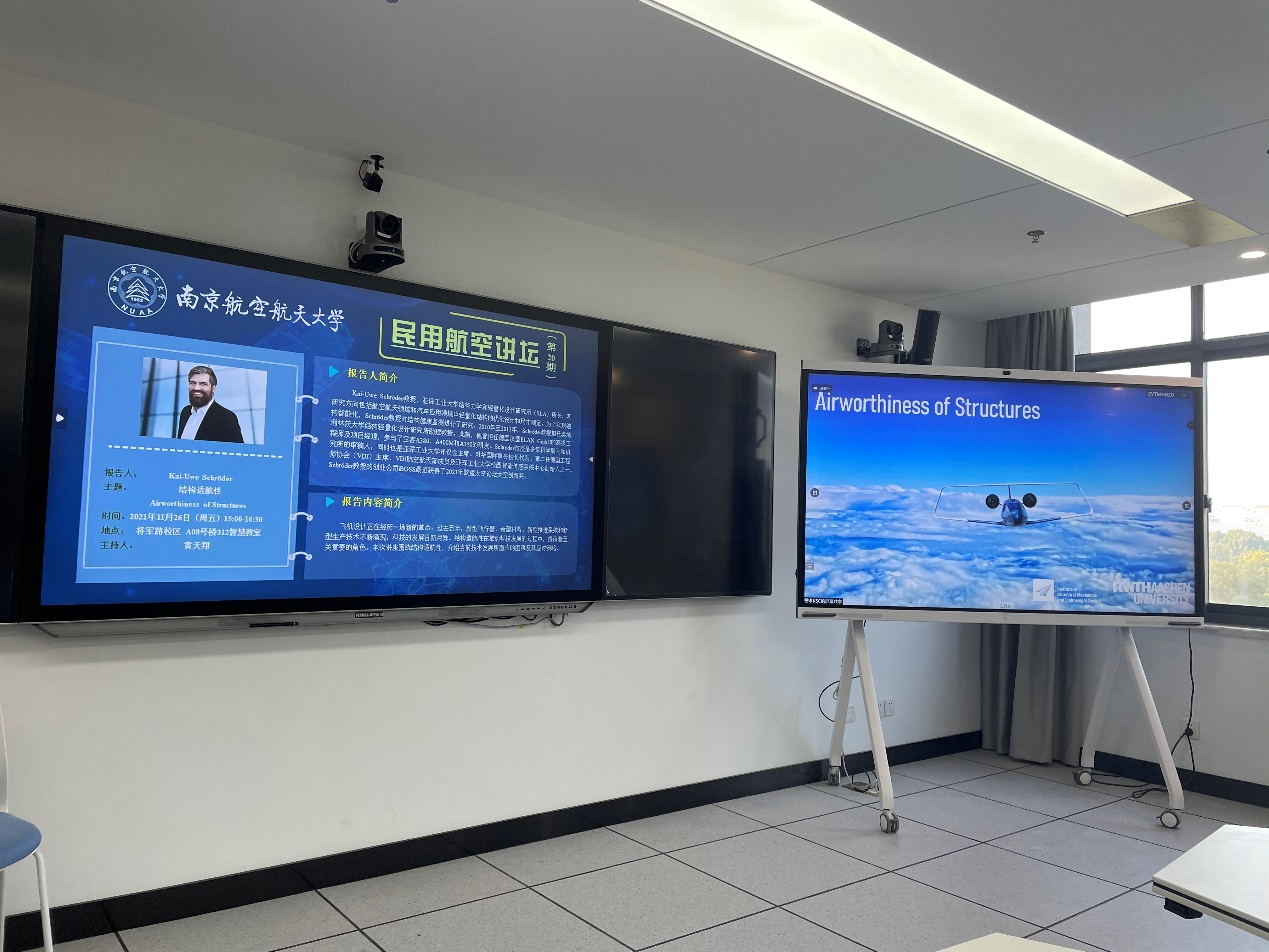 黄天翔老师主持。德国亚琛工业大学结构力学和轻量化设计研究所(SLA)所长Kai-Uwe Schröder教授再次受邀为师生带来了一场围绕结构适航性展开的线上讲座。