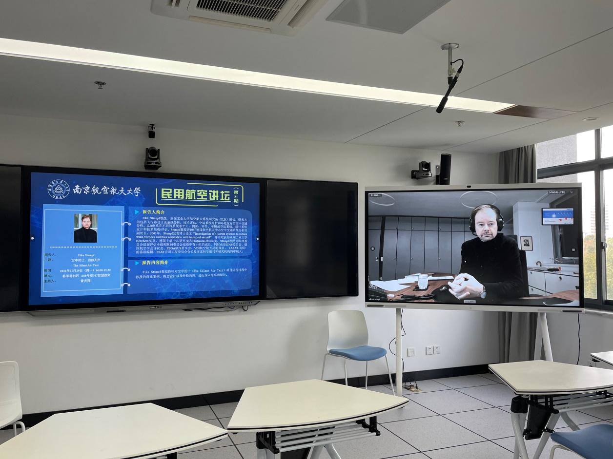 11月29日下午,“民用航空讲坛”第二十一期讲座采用线上线下相结合的形式成功举行,线下会场设置在将军路校区A08号楼312智慧教室。本次讲座由三级片 黄天翔老师主持。德国亚琛工业大学航空航天系统研究所(ILR)所长Eike Stumpf教授受邀为师生带来了一场围绕电力飞行技术展开的线上讲座。