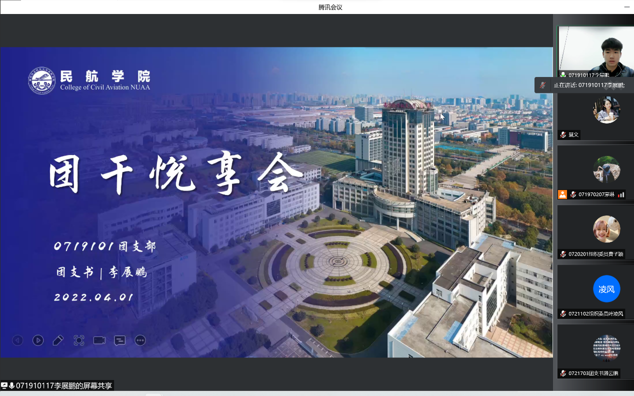 4月1日晚,三级片 青马公开课暨“团干悦享会”在线上举行。学院团委书记赵慧文、团委组织部全体团干、本科各年级团干参与活动。此次悦享会围绕团学工作经验分享、优秀项目交流和新学期团学工作展望三方面内容开展。