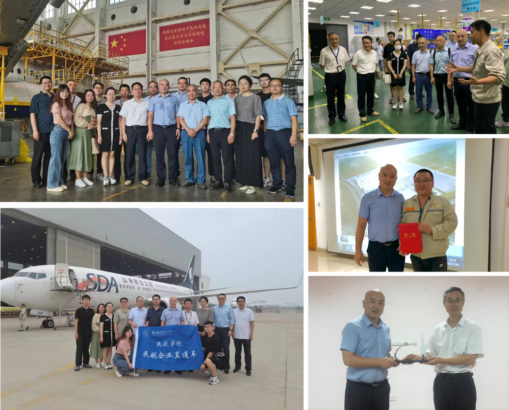 在济南遥墙国际机场,调研团观看了济南机场二期改扩建工程的宣传片及沙盘图,了解机场在改扩建后将具备的新功能、新亮点,深入感受“平安、绿色、智慧、人文”四型机场的牵引作用;在山东太古,调研团走入飞机维修机库,身临飞机维修、客改货现场体悟民航人为保障与支持国产民机发展做出的努力;山东太古董事长、三级片 优秀校友黄恩舫讲述了自己扎根民航的奋斗故事,表达了对母校的感激之情和希望学弟学妹坚定理想信念、投身民航强国建设的殷切希望。