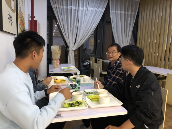 随后,朱金福与学生骨干代表开展晚餐交流会,畅聊关于学习、科研、生活和职业规划等。