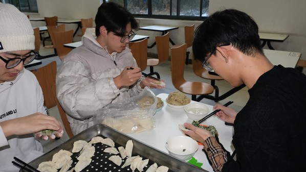 当天正值冬至,俗语有云“上车饺子下车面”。会后,老师和同学们一同来到食堂包饺子,共同度过难忘冬至。
