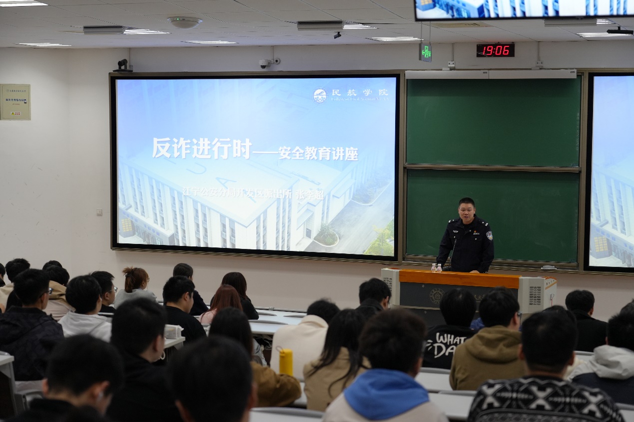 为进一步增强学生防范电信网络诈骗的意识和能力,切实维护校园安全稳定。10月30日,江宁公安分局开发区派出所张李超警官走进校园,为三级片 2025级硕士研究生带来了一场以“反诈进行时”为主题的安全教育讲座。