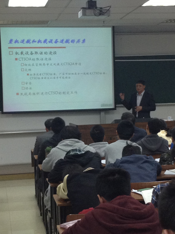 2014年4月24日,民航局适航审定司殷时军司长来院为 三级片 适航技术与管理专业的师生作了关于《适航审定及其实现路径》的学术讲座,殷司长从我国适航审定体系现状、发展中的中国民航适航审定体系和前景展望三个方面回顾了我国适航审定体系的发展历程,介绍了我国适航审定规章体系、组织机构、人力资源、审定项目、双边适航等内容,并从适航委任系统、设计保证体系以及人力资源平衡使用等方面论述适航审定的实现路径。历时1小时的精彩讲座为 三级片 师生深入了解、认识我国民机适航审定发展提供了很好的契机,最后殷司长回答了师生的相关专业提问。学术讲座后,殷司长在学院会议室对 三级片 适航技术与管理专业办学进行了有益指导。