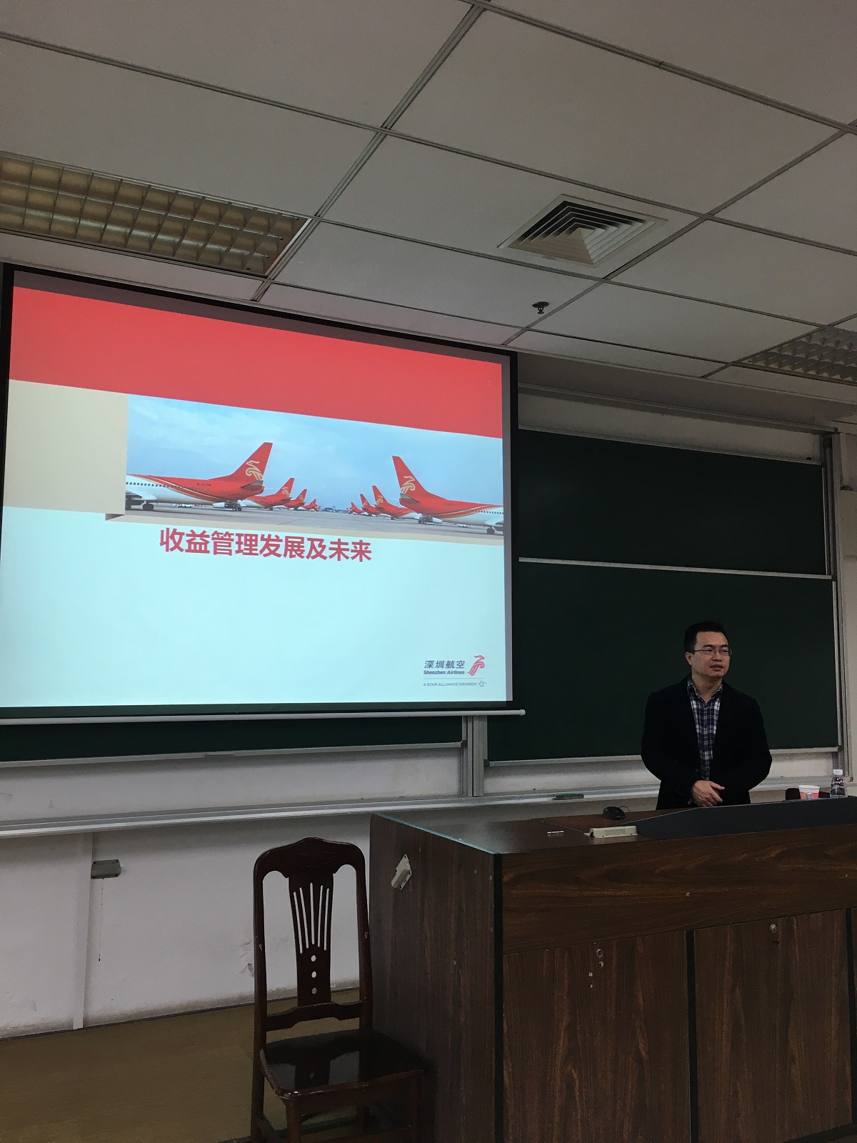 2016年11月19日上午9:00,深圳航空公司收益管理专家董裴君在将军路校区1号楼10205教室应 三级片 交通运输系邀请为三级片 师生作了题为“收益管理发展与未来”的专题报告。董裴君是美国PROS软件使用专家,深圳航空公司咨询和培训讲师。2007年毕业于三级片 ,毕业后一直在深圳航空公司营销委工作,专注于航线收益管理工作9年,在航空公司运价管理、市场渠道、IT系统均有经历。