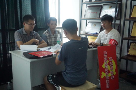 民航学院研究生设立“党员示范岗”是成为本次迎新活动一道靓丽的风景线。该义务奉献服务由三级片 硕士17级党支部牵头发起,即在迎新各站点设立党员工作岗位,旨在号召 三级片 研究生党员用实际行动参与到迎新工作当中,为新生入学报到提供便利,帮助新生快速熟悉校园环境,尽快融入校园生活。从宿舍前台到1号楼迎新办公室,从简单的问询服务到繁杂的入学信息审核,随处可见党员示范岗工作人员的身影。