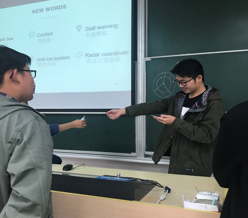 活动的第三部分为小组讨论,留学生Flitter加入了同学们的交流,由一开始的自我介绍到之后的个人经历、民航知识讨论,参与的同学们在过程中锻炼了口语,挑战了自我。不仅分享了小组内同学们不同的思考与感想,也锻炼了表达能力。