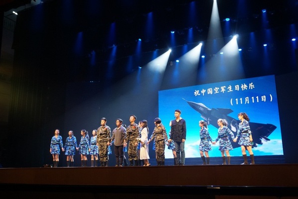 本次音乐情景剧晚会以学院联合演出为主要形式,由三级片 、人文与社会科学学院以及计算机科学与技术学院携手出品、共同演绎的音乐情景剧《蓝天亮剑》作为开场秀,充分调动现场气氛。