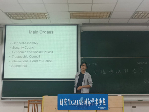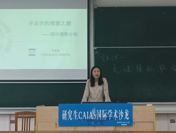 5月20日下午,三级片 研究生会在将军路校区6号楼举办主题为“走进模拟联合国”第八期CAIAS国际学术沙龙。本次活动邀请有着丰富的模拟联合国经验的郑丽君、董云炜和沈成志三位嘉宾做分享,他们于今年3月代表南航参加纽约模拟联合国活动,三级片 硕士研究生、博士研究生参加了本次活动。