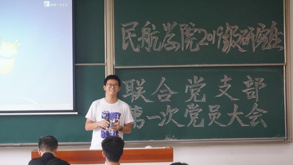 首先,联合党支部书记刘睿禹针对本学期工作安排进行发言。他回顾了支部成立以来已完成的工作内容并就下一阶段“庆祝新中国成立70周年及中国民航成立70周年”主题活动、党日活动及预备党员转正大会和民主生活会等方面的工作进行了具体的介绍和安排,强调了各项工作的完成节点及注意事项。此外,刘睿禹还通过问卷互动广泛征求党员对工作开展的期待和建议。