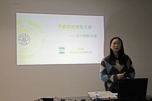 接着,郑丽君从曾作为南航代表团的一员参加纽约模拟联合国活动的角度出发,详细介绍了模拟联合国的流程,并通过现场的一系列照片分享了自己的感受。针对参加模联的前期准备工作,她生动形象地将其与科研做类比,指出在准备模联的过程中,要广泛地搜集资料,定好议题,就该议题进行多角度、多立场地深入分析,这一过程和科研的流程大致相同,并且二者可以互为促进、共同提高。郑丽君表示,模拟联合国不仅可以提高英语口语水平,更是一个锻炼沟通交流能力、了解多元文化的平台。最后,她以自己本科担心口语不过关而与模联失之交臂的经历鼓励同学们勇于尝试,在做中学,在学中做。