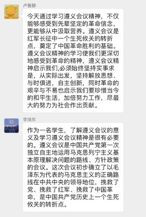 支部的其他党员和入党积极分子也深受遵义会议精神的鼓舞,纷纷在微信群中发表学习体会。