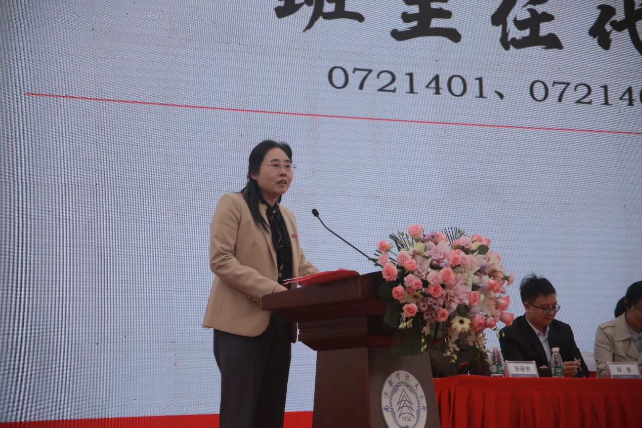 受聘仪式后,宫淑丽代表新生班主任对2021级各位同学的到来表示了热烈的欢迎。发言中,她对新生提出了三点希望:一是学会学习,成为一个优秀的专业人才;二是学会做事,成为一个具有团队协作精神的人;三是学会做人,做一个内心充满光芒、值得感恩之人。最后,她再次欢迎了新同学的到来,并表示将努力使自己更加优秀,为同学们的成长成才做好一切护航的准备。